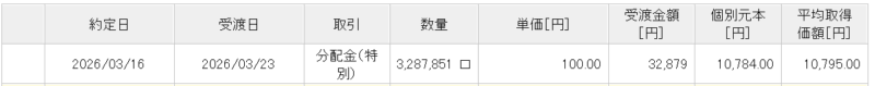 3月の分配金は特別分配金で32,879円でした。