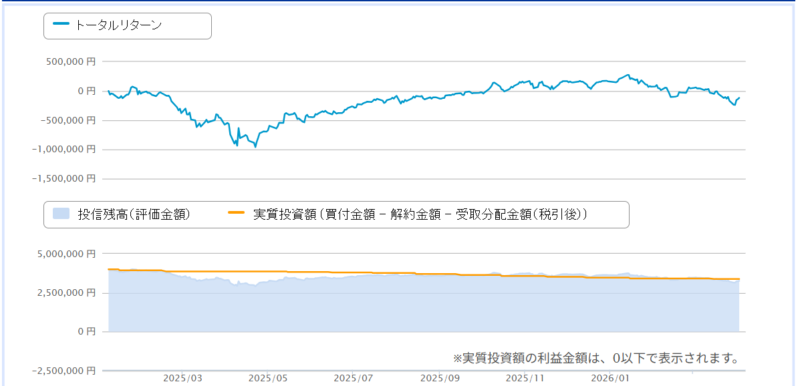 分配金は「受け取り」にしております(再投資しません)。