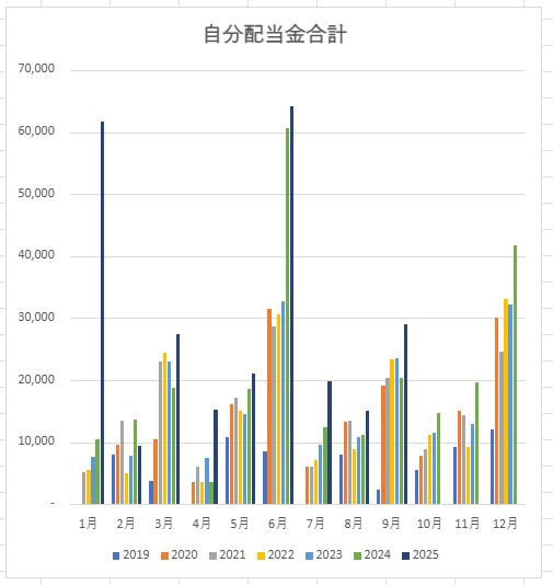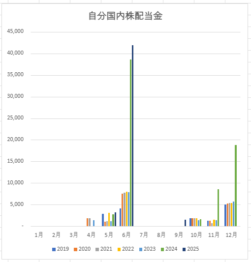 自分の国内配当金(単位:¥) | 2024年 | 2025年 | 2026年 | 2027年 | 2028年 |