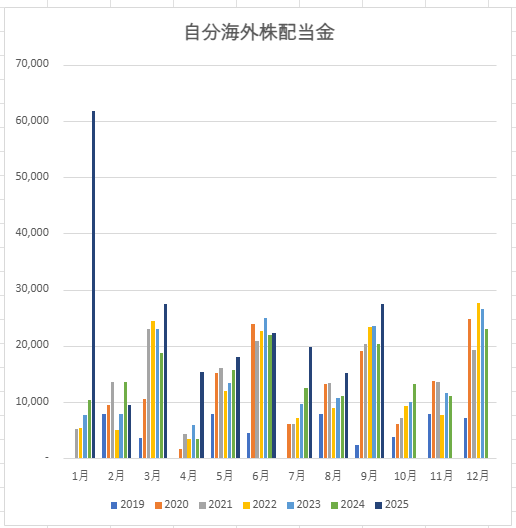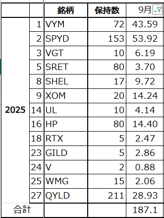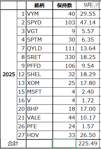 自分の海外配当金(単位:$) | 2024年 | 2025年 | 2026年 | 2027年 | 2028年 |