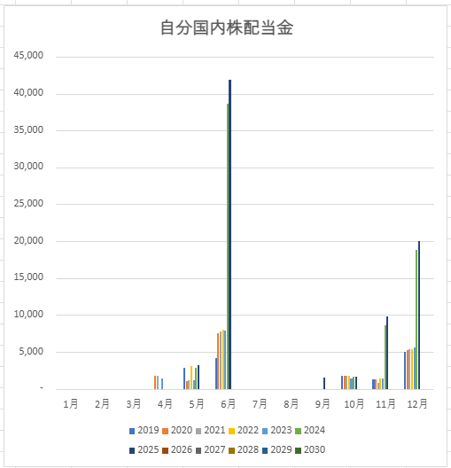 自分の国内配当金(単位:¥) | 2024年 | 2025年 | 2026年 | 2027年 | 2028年 |