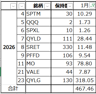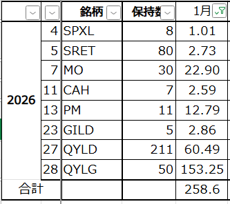 2026年1月の配当金です。