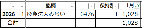 2026年1月 自分配当金